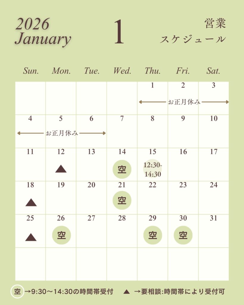 2026年1月のアロマケアのご予約受付を開始いたします。
