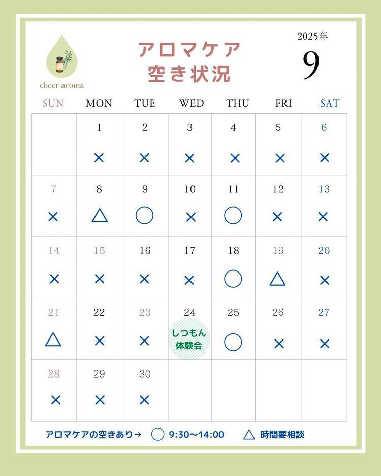9月のアロマケアの空き状況